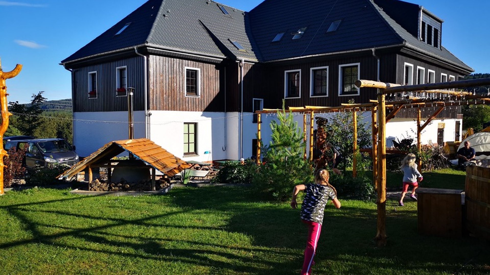 Silber, Zinn und andere Bodenschätze gaben dem Erzgebirge damals seinen Namen. Ausgedehnte Wälder und vielfältige Freizeitangebote machen es heutzutage zu einem beliebten Urlaubsgebiet. Unser Jugendgästehaus liegt am Rand von Johanngeorgenstadt im westlichen Teil des Erzgebirges und damit nahe der Grenze zur Tschechischen Republik. Das Haus bietet moderne Mehrbettzimmer mit Doppelstockbetten, die Sanitäranlagen befinden sich auf dem Flur. Abgeschlossene Wohnbereiche ermöglichen eine altersgerechte getrennte Unterbringung von kleinen und großen Kindern, sowie Jugendlichen. Das Objekt besitzt einen Lagerfeuerplatz, Tischtennisplatten, einen Airhockeyautomaten & Dart, eine Sauna, sowie einen Kamin und Aufenthaltsräume. Neben einem großen Badesee und einem Hallenbad geben euch Sportflächen für Fußball, Basketball und Volleyball Gelegenheit zu sportlicher Betätigung. Außerdem gibt es zwei historische Besucherbergwerke, ein Kletterzentrum und Shoppingmöglichkeiten. Die Grenze zur Tschechischen Republik zieht sich mitten durch den Ort. Auf der anderen Seite der Grenze findet ihr ein weiteres Hallenbad und einen riesigen Markt, der einer kleinen Stadt aus Buden gleicht.